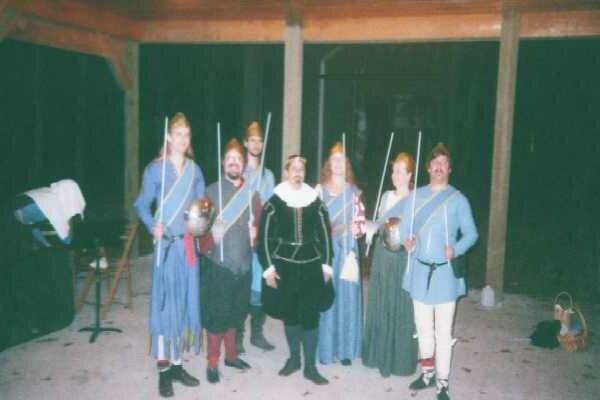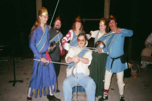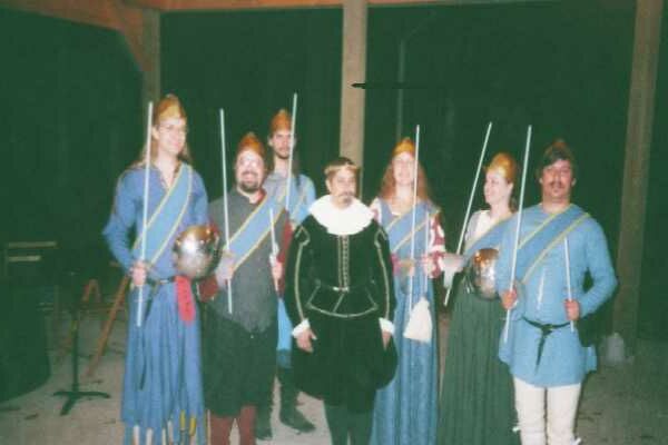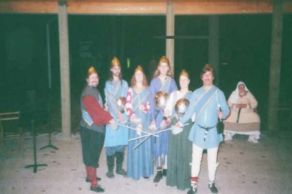 In the autumn of A.S. XXXVI (2001) a subgroup of Accademia della Danza began practicing Thoinot Arbeau's sword dance, Les Bouffons. From these practices emerged The Carolingian Buffens Team (or CBT as we sometimes call ourselves - we don't care if some think that acronym stands for something else, we know it stands for Carolingian Buffens Team). One can only wonder at the humble beginnings of CBT, because CBT is now anything but humble.